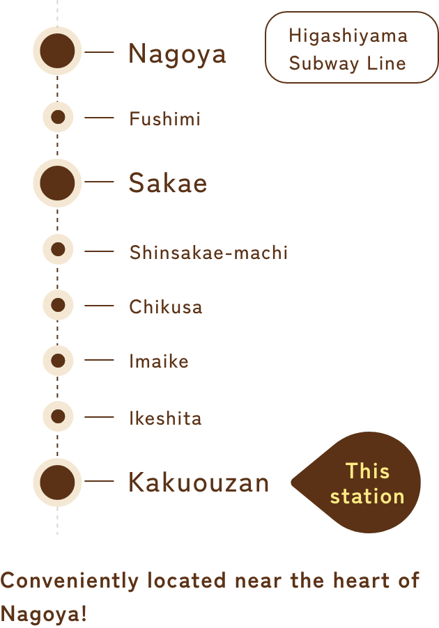 From JR Nagoya Station, take the Higashiyama Subway Line toward Fujigaoka14min.